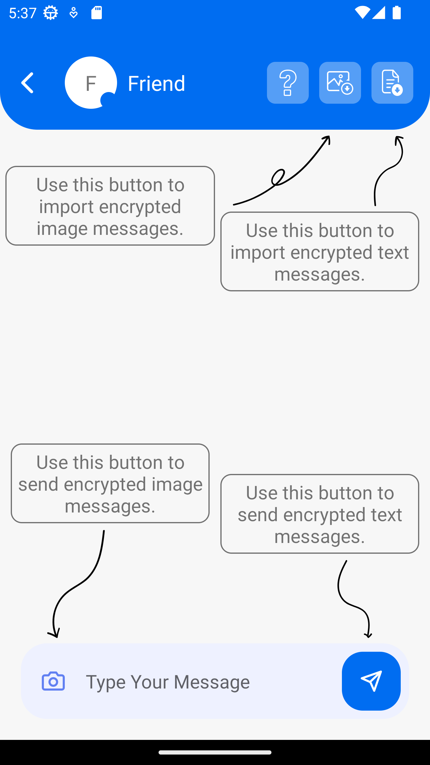 You can encrypt your messages and send them as text (random words) or image (choose any image from your device gallery).